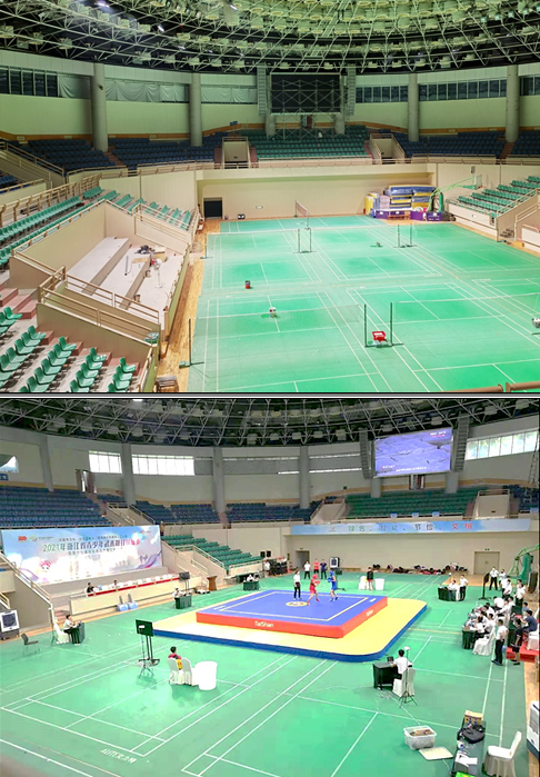 永康市体育中心体育馆,举办省运会的攀岩和武术散打两项赛事的赛场。为确保省运动会的顺利进行及提升永康体育中心作为全民健身场地功能,本次设计力求在满足省运会攀岩和武术两项赛事,确保扩声系统可摆脱对建筑声学的过度依赖,采用了国内扩声品牌PEUTZ的高清线阵列音箱,成功的解决了在没有吸音装修环境下的赛事语言清晰度。经国家第三方权威声学检测机构检测,各项扩声声学指标均达到GB\T 28049-2011标准中一级指标。