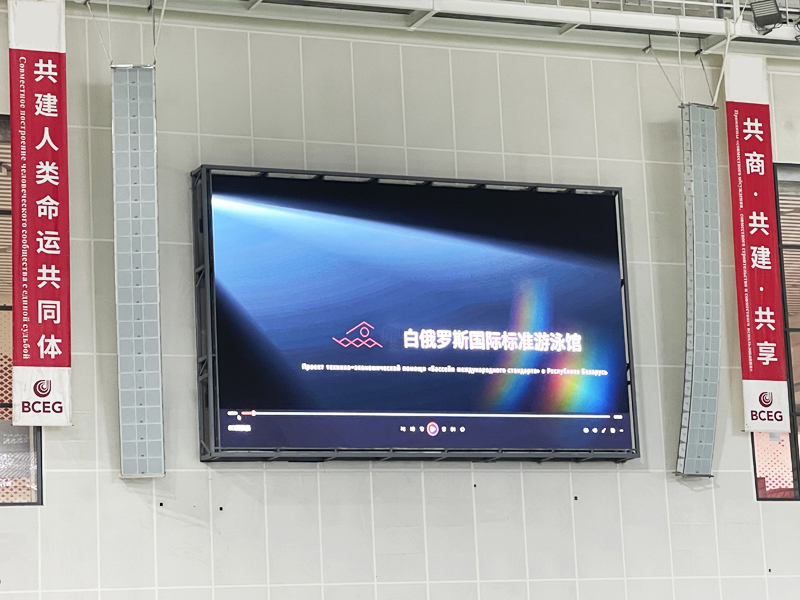 在白俄游泳馆比赛池和热身训练池,均采用PEUTZ 的高清线阵列扬声器,实现了扩声系统扬声器对观众席既要满足较大声压级的直达声覆盖,又要能有效的避开游泳馆内容易声反射的空间界面,做到以最小化的激发声场来实现减少不必要的混响声和反射声,进而提高语言清晰度。经检测各声学指标均达到一级标准。